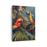 Fototapet Premium Canvas - Romantiken i tropikerna - Ara papegoja, Djur, Tropisk skog - 100x70 cm