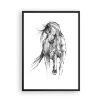 Affisch i svart ram - Skiss av en häst i dynamisk pose - 50x70cm - Elegant trav - Modern väggdekoration för vardagsrum och sovrum ARTTOR