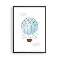 Affisch i svart ram - En akvarell luftballong som svävar bland molnen - 50x70cm - Hel i molnen - Modern väggdekoration för vardagsrum och sovrum ARTTOR