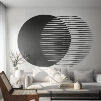 Fototapet Standard Eco - Svart cirkel med horisontella linjer på vit bakgrund - 100x70cm - Hans alter ego - Modern väggdekoration för vardagsrum och sovrum ARTTOR