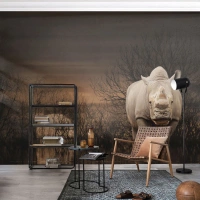 Fototapet på mått Premium Sand - Vit mot naturen - Noshörning, Djur, Afrika