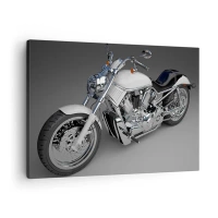 Canvastavla - Bild på duk - Vit cruiser motorcykel på en grå bakgrund - 70x50cm - Man vill lägga sig knäna - Modern väggdekoration för vardagsrum och sovrum ARTTOR