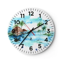 Väggklocka - Klocka på glas - Någonstans i Stilla havet - 40x40 cm