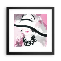 Affisch i vit ram - En damportätt i svart och rosa - 30x30 cm