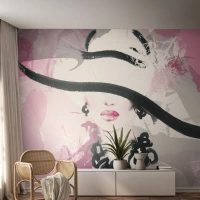 Fototapet Premium Sand - En damportätt i svart och rosa - Kvinna, Kvinnans ansikte, Abstraktion - 200x140 cm