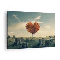 Canvastavla - Bild på duk - Ett hjärtformat träd i ett fält av stubbar, en symbol för hopp - 70x50cm - Det finns fortfarande hopp - Modern väggdekoration för vardagsrum och sovrum ARTTOR