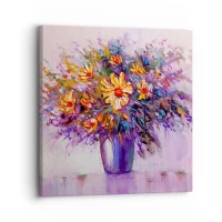 Väggklocka - Klocka på glas - En bukett blommor i lila med intensiva färger - 30x30cm - Doftar sött, ser sött ut - Modern väggdekoration för vardagsrum, kök och sovrum ARTTOR