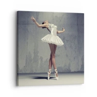 Väggklocka - Klocka på glas - En ballerina i vit klänning intar en dynamisk pose mot en betongvägg. - 30x30cm - Lätt som en fågel - Modern väggdekoration för vardagsrum, kök och sovrum ARTTOR