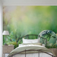 Fototapet Standard Eco - Jordens glasglob i ett grönt landskap - 100x70cm - Grön planet - Modern väggdekoration för vardagsrum och sovrum ARTTOR