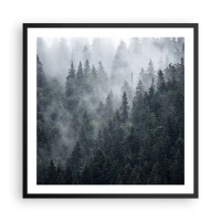 Affisch i svart ram - Gryning i skogen - 60x60 cm