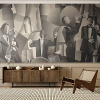 Fototapet Standard Eco - Abstrakt jazzbandscen i grå nyanser - 100x70cm - I ljudrummet - Modern väggdekoration för vardagsrum och sovrum ARTTOR
