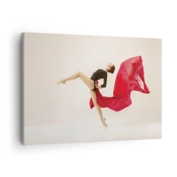 Canvastavla - Bild på duk - En dynamisk dansare i svart outfit och rött tyg i rörelse. - 70x50cm - Röd och svart - Modern väggdekoration för vardagsrum och sovrum ARTTOR