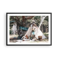 Canvastavla - Bild på duk - Boho-dekoration med en tipi i skogen - 70x50cm - Make love… - Modern väggdekoration för vardagsrum och sovrum ARTTOR