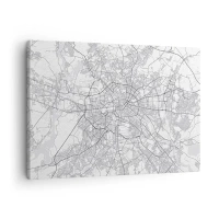 Canvastavla - Bild på duk - Detaljerad svartvit stadskarta - 70x50cm - Berlins blomma - Modern väggdekoration för vardagsrum och sovrum ARTTOR
