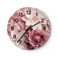 Väggklocka - Klocka på glas - I rosa kronblad - 40x40 cm