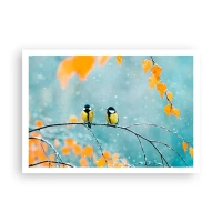 Affisch i vit ram - Fåglarnas skvaller - 100x70 cm
