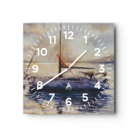 Väggklocka - Klocka på glas - Kväll i viken - 40x40 cm