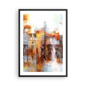 Affisch i svart ram - En pittoresk stad med en konstnärligt utformad bro - 50x70cm - Vackert under bron - Modern väggdekoration för vardagsrum och sovrum ARTTOR