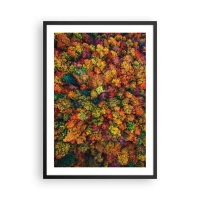 Affisch i svart ram - En färgglad skog sedd från ett fågelperspektiv i sin höstliga palett - 50x70cm - Höstträdens bukett - Modern väggdekoration för vardagsrum och sovrum ARTTOR