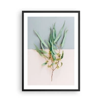 Affisch i svart ram - En kvist eukalyptus på en pastellfärgad bakgrund - 50x70cm - Pastellens subtilitet - Modern väggdekoration för vardagsrum och sovrum ARTTOR