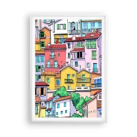 Affisch i ram av ljusek - Gladlynt stad - 70x100 cm