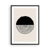 Affisch i svart ram - En minimalistisk grafik som visar ett tvärsnitt av trä - 50x70cm - Hälften hälften - Modern väggdekoration för vardagsrum och sovrum ARTTOR