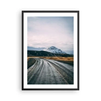 Affisch i svart ram - En väg som leder mot de snötäckta bergen - 50x70cm - I isländsk stämning - Modern väggdekoration för vardagsrum och sovrum ARTTOR