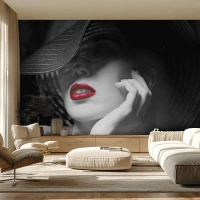 Fototapet Standard Eco - En studie i scharlakansröd - Kvinna, röda läppar, Mode - 300x210 cm
