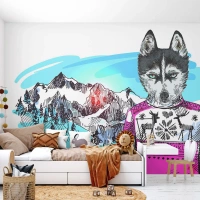 Fototapet Standard Eco - Varg i fårskinn - Abstraktion, Varg, För barn - 300x210 cm