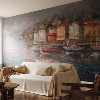 Fototapet Premium Canvas - Romantisk hamn - Arkitektur, Hamnstad, Segelbåt - 250x175 cm