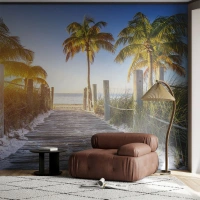 Fototapet Premium Sand - Gyllene mildhetslandskap - Landskap, Hav, Träbro - 350x256 cm