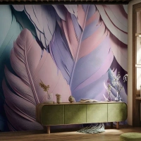 Självhäftande Fototapet Deluxe Sticker - Fågelstil - Pastell, Fjädrar, Lätthet - 250x175 cm