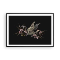 Affisch i svart ram - Exotisk, broderad fågel - 100x70 cm