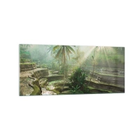 Glastavla - Bild på glas - På ett risfält - 120x50 cm