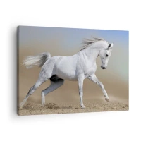 Glastavla - Bild på glas - En vit häst galopperar över sandmarken - 70x50cm - Den vackraste arabiska sagan - Modern väggdekoration för vardagsrum och sovrum ARTTOR