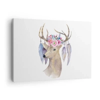 Canvastavla - Bild på duk - Romantisk hjortgrafik med blommor och fjädrar - 70x50cm - Själguide - delikat, oskyldig - Modern väggdekoration för vardagsrum och sovrum ARTTOR