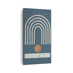 Canvastavla - Bild på duk - Geometri mot mörkblå bakgrund - 55x100 cm