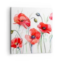 Glastavla - Bild på glas - Akvarell röd vallmo på vit bakgrund - 70x50cm - Polska blommor - Modern väggdekoration för vardagsrum och sovrum ARTTOR