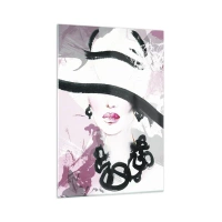 Glastavla - Bild på glas - En damportätt i svart och rosa - 80x120 cm