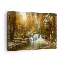 Canvastavla - Bild på duk - Höstlandskap med ett vattenfall - 70x50cm - Parkkaskad - Modern väggdekoration för vardagsrum och sovrum ARTTOR