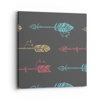 Canvastavla - Bild på duk - Stiliserat pilmönster i pastellfärger på en mörk bakgrund - 70x50cm - I ordning - Modern väggdekoration för vardagsrum och sovrum ARTTOR