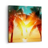 Canvastavla - Bild på duk - Palmer upplysta av det varma ljuset från den nedgående solen - 70x50cm - Exotisk par - Modern väggdekoration för vardagsrum och sovrum ARTTOR