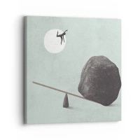 Canvastavla - Bild på duk - En symbolisk scen med en figur och balans mot en ljus himmel. - 70x50cm - Uppfylld dröm - Modern väggdekoration för vardagsrum och sovrum ARTTOR