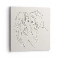 Canvastavla - Bild på duk - En minimalistisk illustration av ett par i en kärleksfull omfamning - 70x50cm - I kärlekens famn - Modern väggdekoration för vardagsrum och sovrum ARTTOR