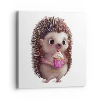 Canvastavla - Bild på duk - En söt igelkott med en muffin - 70x50cm - Varje dag är helgdag - Modern väggdekoration för vardagsrum och sovrum ARTTOR