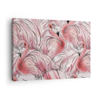 Canvastavla - Bild på duk - Fina teckningar av rosa flamingos - 70x50cm - Fåglarnas corps de ballet - Modern väggdekoration för vardagsrum och sovrum ARTTOR