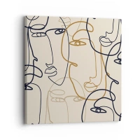 Canvastavla - Bild på duk - Minimalistiska linjekonst ansikten mot en ljus bakgrund - 70x50cm - Mångfaldigad porträtt - Modern väggdekoration för vardagsrum och sovrum ARTTOR