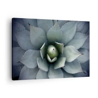 Glastavla - Bild på glas - En närbild av de symmetriska, stålfärgade agavebladen. - 70x50cm - Lockar och varnar - Modern väggdekoration för vardagsrum och sovrum ARTTOR