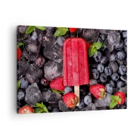 Glastavla - Bild på glas - En ispinne bland fryst frukt och myntablad - 70x50cm - En smak av varm sommar - Modern väggdekoration för vardagsrum och sovrum ARTTOR