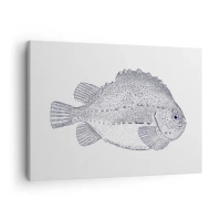 Canvastavla - Bild på duk - Svartvit teckning av en fisk mot en vit bakgrund i minimalistisk stil - 70x50cm - Till naturforskarens album - Modern väggdekoration för vardagsrum och sovrum ARTTOR